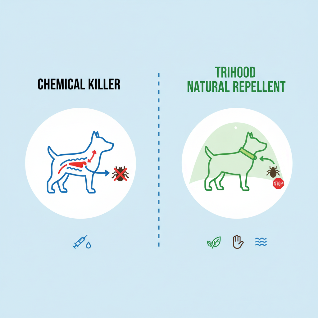 Most collars you find at the vet rely on synthetic pesticides, but the Trihood Flea & Tick Collar takes a different path. Our team at Petscarelab looked into the formula and found a blend of Citronella Oil and Peppermint Oil as the heavy hitters. Instead of a 100% chemical saturation, these collars use an extended-release matrix to slowly emit these natural oils over your pup's coat.