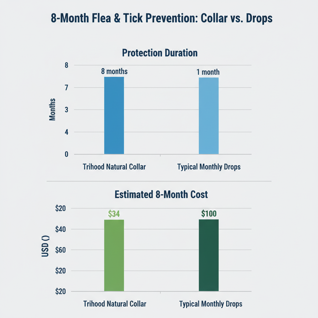 Petscarelab’s Verdict: The Trihood Natural Flea and Tick Collar is an excellent, low-stress alternative for health-conscious owners who want to ditch harsh pesticides in favor of a waterproof, 8-month repellent system.