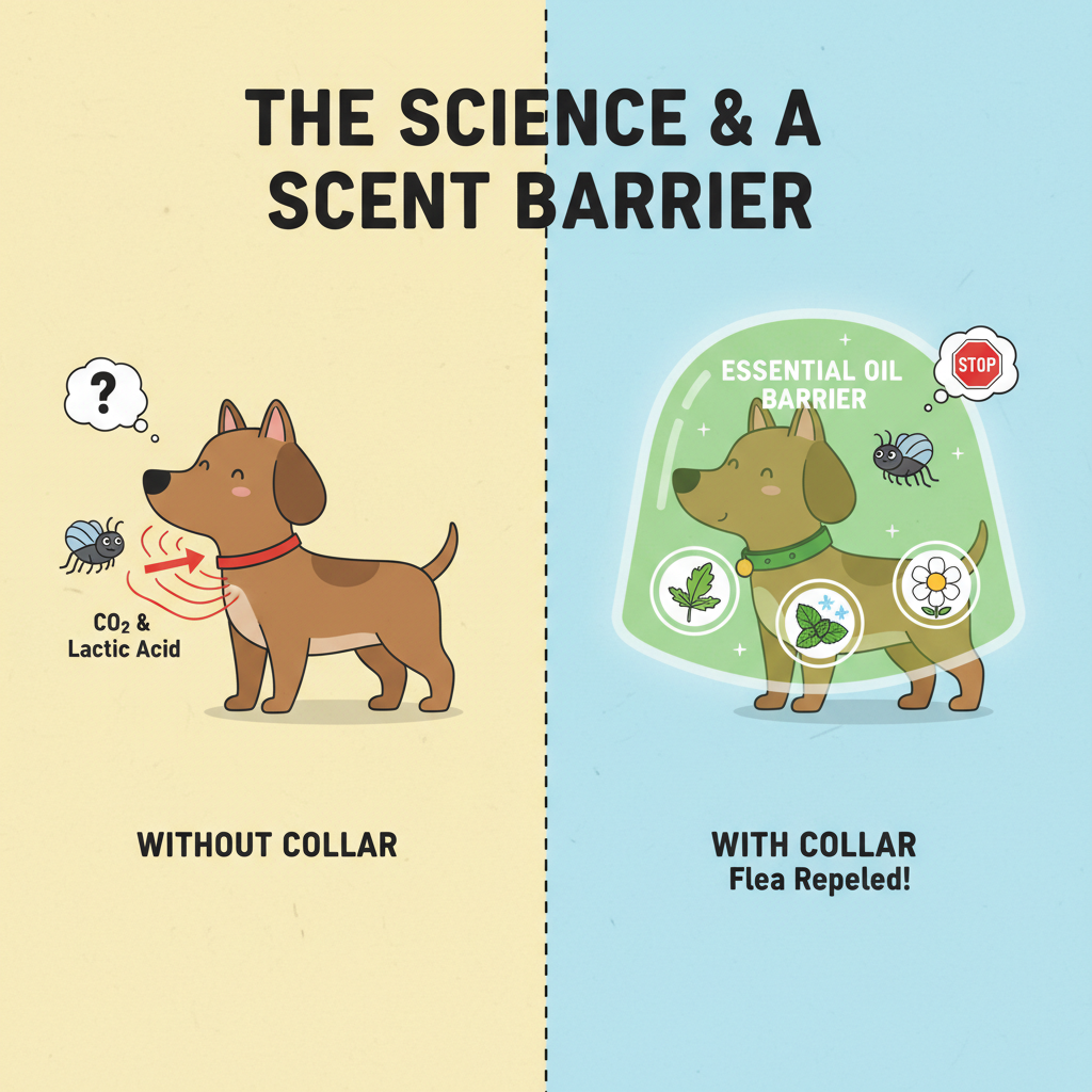 Unlike chemical collars that seep into your dog's sebaceous glands, this natural flea and tick collar for dogs works by creating a concentrated "scent barrier." Citronella and peppermint are natural deterrents that mask the carbon dioxide and lactic acid scents that attract pests in the first place. The inclusion of chamomile is a smart touch—it helps soothe the skin, reducing the risk of the "collar itch" that many pups experience with synthetic brands.