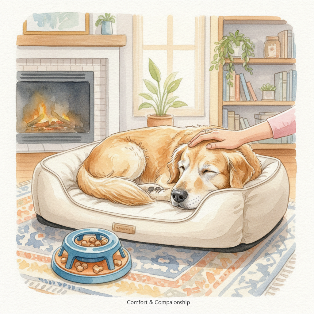 "We must acknowledge that aging dogs may face physical limitations," she notes. "Senior dogs benefit tremendously from orthopedic beds that ease joint pain and ramps or stairs that help them safely reach favorite spots."