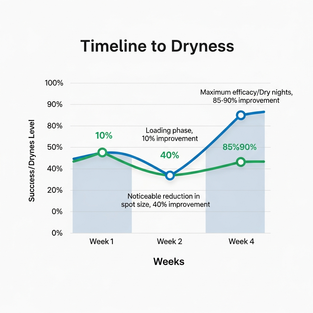 You likely won't see a "dry" dog overnight. In the first two weeks, many owners notice a slight reduction in the size of the wet spots. It takes time for the plant-based estrogens to help the bladder muscles "tighten up."