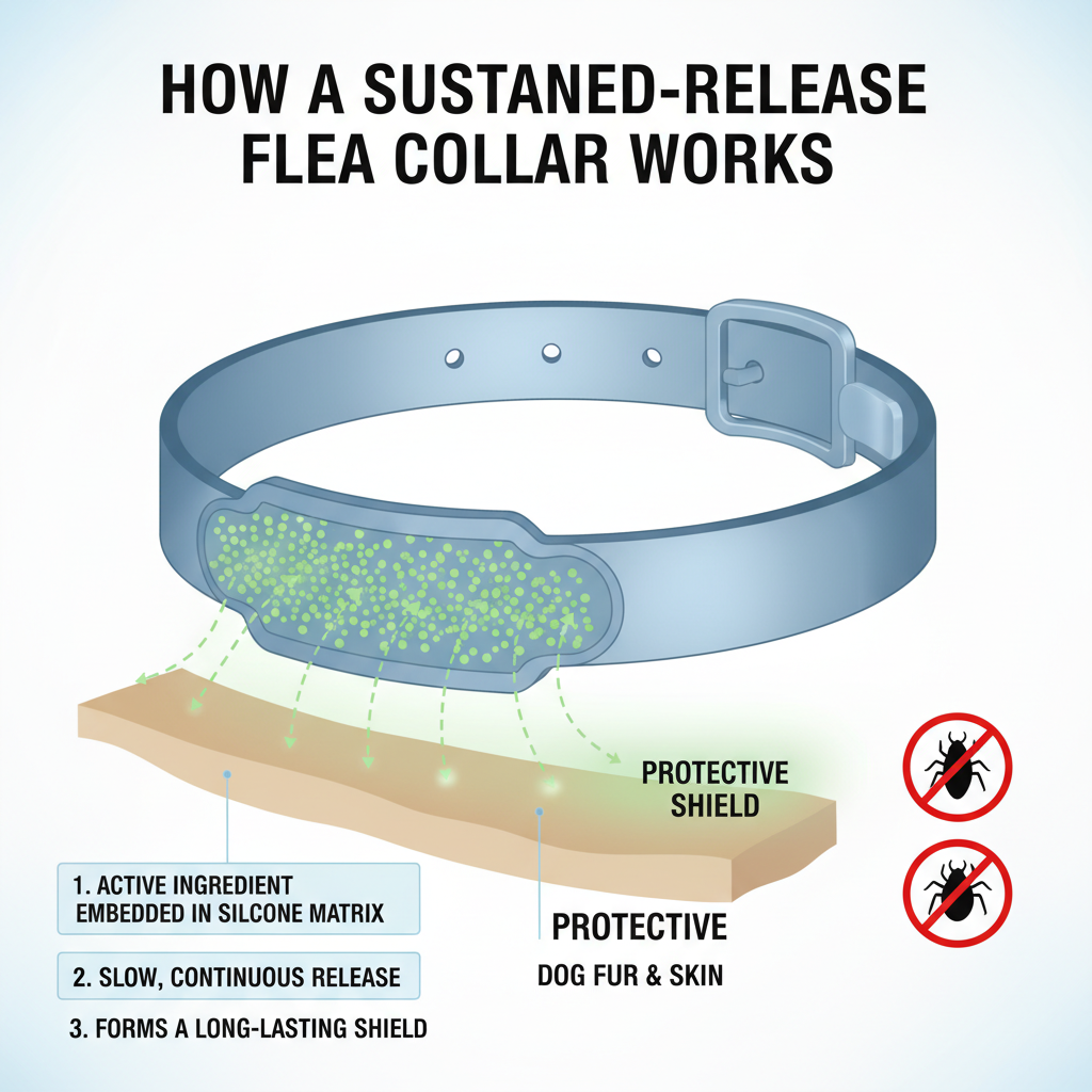 When we look at long-lasting flea and tick protection for dogs, the secret usually lies in the delivery system. The VICSOM collar uses a sustained-release matrix embedded within its silicone structure. Instead of a messy chemical dump, it gradually dispenses its active formula over an 8-month period per collar. Our team at Petscarelab noticed this approach effectively targets pests at every life stage—from larvae to biting adults. By maintaining a consistent 24-hour barrier, the collar works to neutralize fleas, ticks, mites, and lice before they can hitch a ride into your living room.