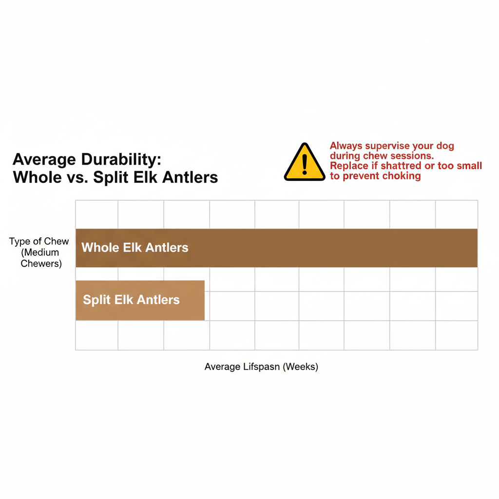 We've looked closely at the processing, and it’s a relief to see that these antlers aren't treated with chemical bleach, formaldehyde, or artificial dyes. Many mass-market bones use these chemicals to look "cleaner," but they can be toxic for your pup. While the Wag Split Elk Antler is naturally processed, keep in mind that split antlers are slightly less durable than whole ones. Our team suggests always supervising your dog during chew sessions. If you notice the antler starts to shatter or once it's worn down to a size that could be swallowed, swap it out for a fresh one to prevent any choking risks.