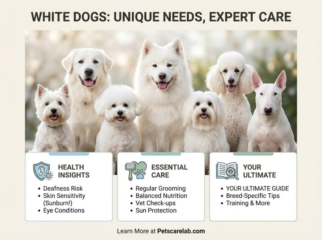 Caring for a white dog means paying attention to their unique coat and any potential health quirks. Here’s what our research suggests you should do: