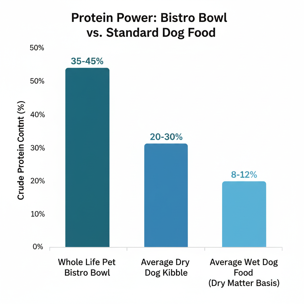 The Whole Life Pet Bistro Bowl for Dogs focuses on a "less is more" philosophy. By looking at the Tuscan Blend and similar recipes in this line, our research shows a clear preference for high-quality components: