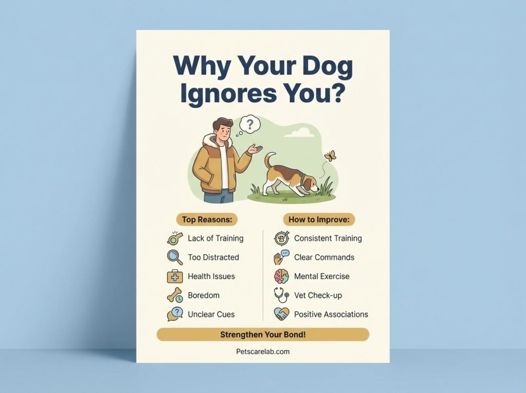 If you're truly worried about your dog ignoring you, our team at Petscarelab recommends reaching out to a certified dog trainer or your veterinarian. They can help you get to the bottom of the behavior and create a personalized plan to improve communication and strengthen the bond with your furry best friend.