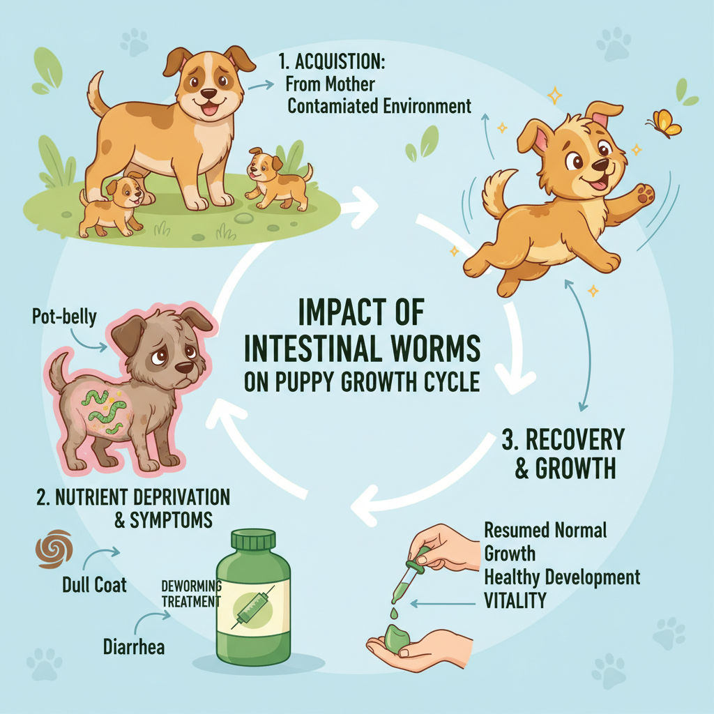 The silver lining is that once the puppy undergoes treatment and clears the worms, their body can recover, and normal growth and development typically resume.