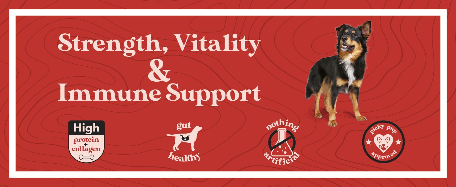 This is the star of the show. It provides a natural source of collagen and amino acids that help maintain a healthy gut lining and keep your pup’s skin hydrated.