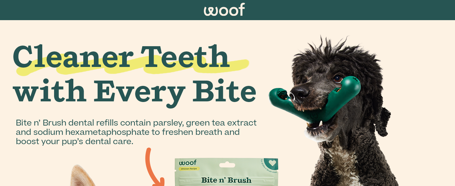 - Design & Utility: The refills are specifically shaped to slide into the WOOF Bite n' Brush toy. It’s a "lock and key" system. If you don't have the toy, these treats won't provide the same scrubbing action, so keep that in mind.