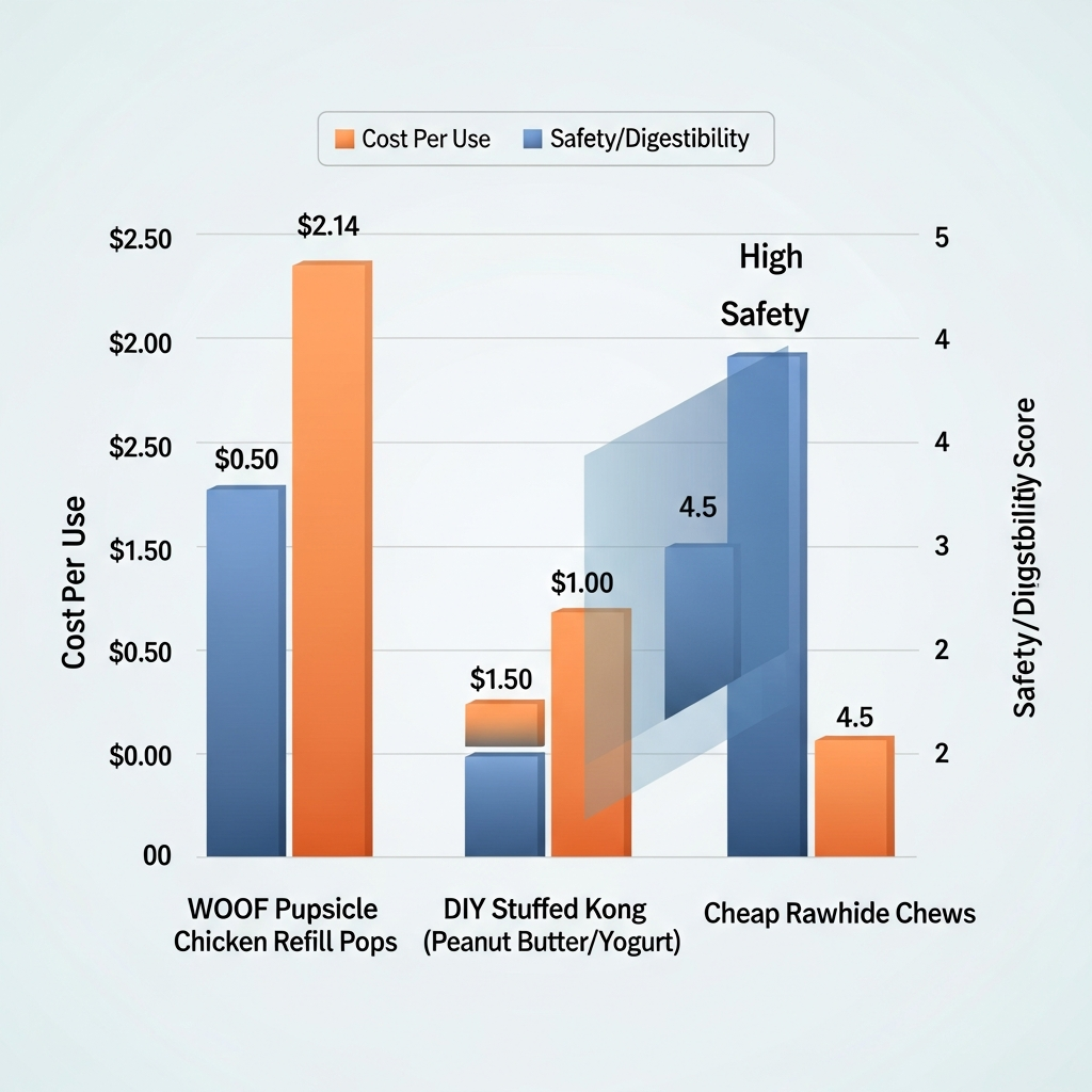 Safety is where the WOOF Pupsicle Chicken Refill Pops really shine when paired with their dedicated toy. Because the treat is tucked inside a rubber housing, you don't have to worry about your dog gulping down large, sharp fragments. We checked for chemical bleaching and artificial preservatives and found none.