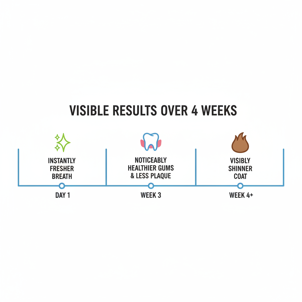 This is where the magic happens. After about three weeks of daily use, you'll likely notice the gum line looking less angry and red. While it won't replace a professional vet cleaning for heavy tartar, it does a great job of softening the yellow buildup and preventing new plaque from setting.