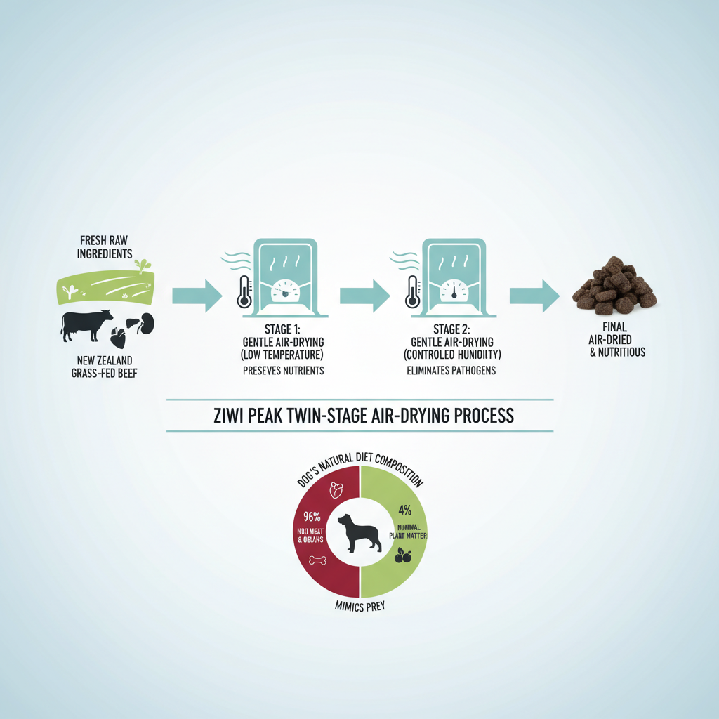 Our research shows that ZIWI Peak Air-Dried Dog Food isn't your standard kibble. It's a raw alternative that uses a gentle twin-stage air-drying process. This method protects the nutrients while killing off any bad bacteria, giving you the benefits of raw food with the convenience of a scoop-and-serve bag. The recipe is built on a "PeakPrey" model, which means it mirrors what a dog would naturally hunt in the wild—lots of meat and organs with very few carbs.